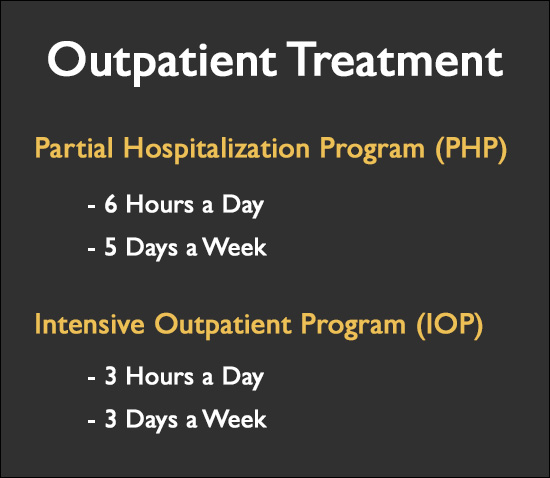 There are various levels of outpatient treatment, varying from extensive to less so. Conventional outpatient services can vary significantly and will depend on each specific treatment center and the requirements of the individual seeking treatment. More intensive and structured programs consist of intensive outpatient programs (IOPs) and partial hospitalization programs (PHP). These programs might be very comparable to inpatient drug rehabilitation programs, with the primary difference being that the individual returns home each night.